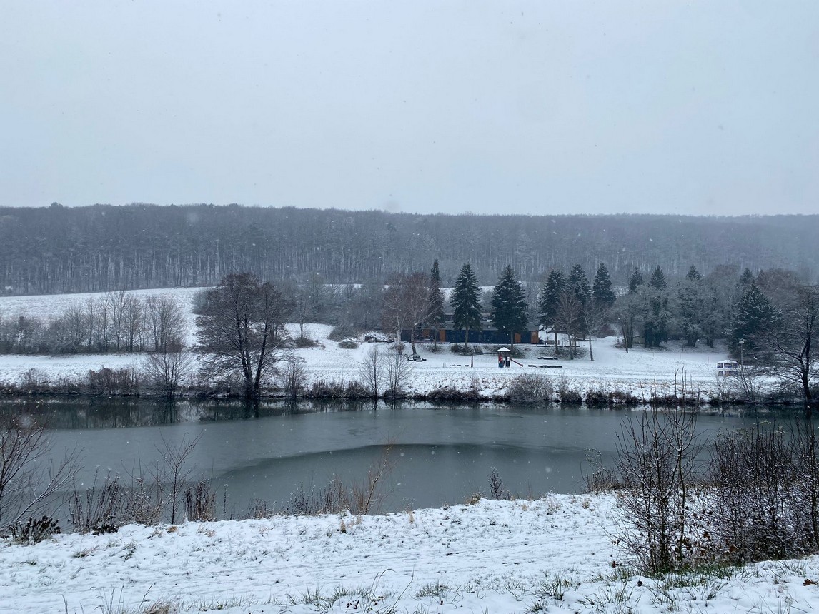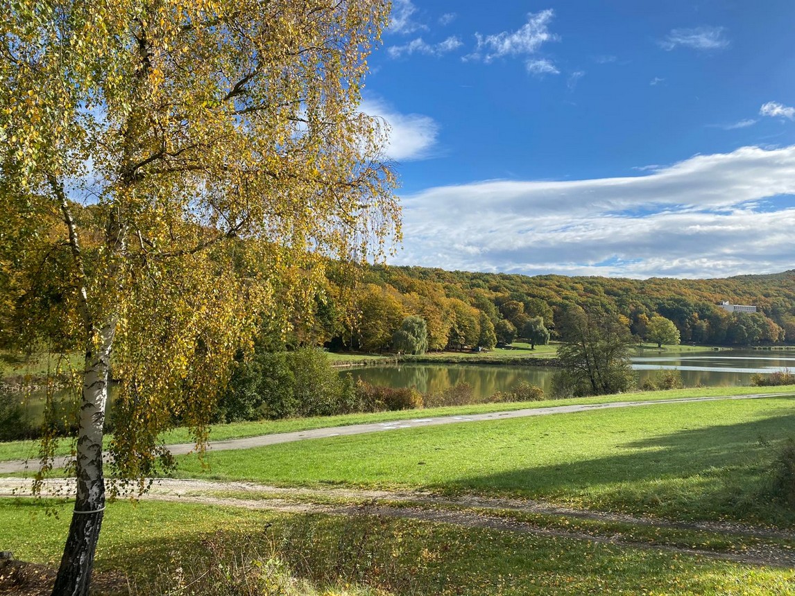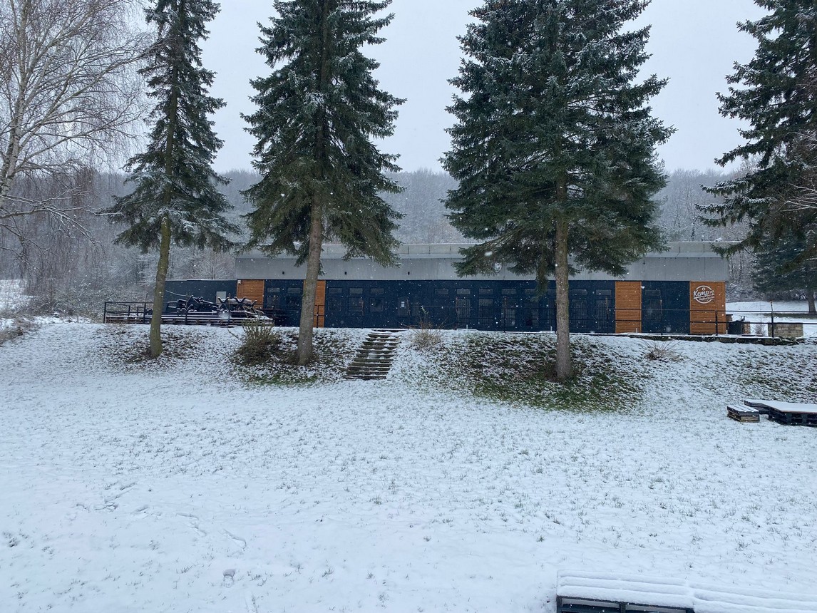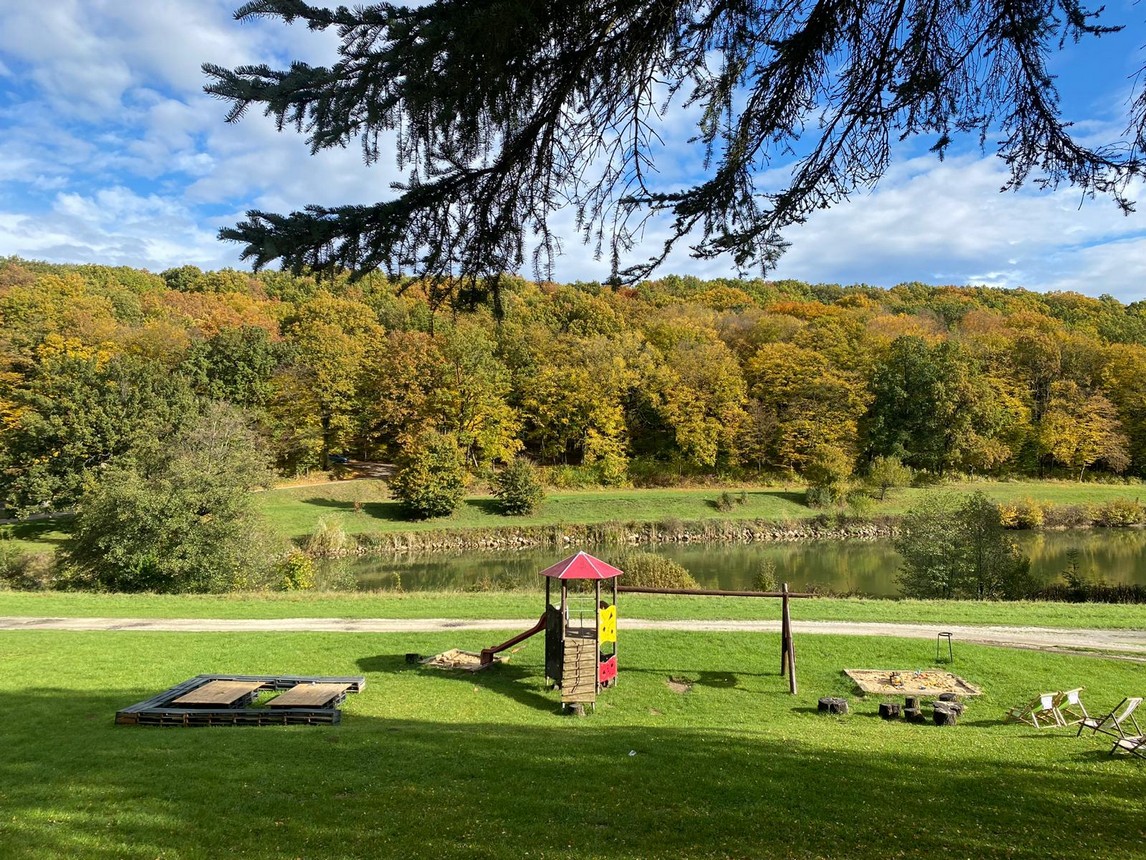 V areáli sa nachádza jazero s plážou, kde je možné sa kúpať.
